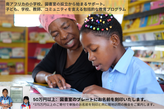 このご支援により、南アフリカの小学校へ図書室を設置するだけでなく、学校・地域全体の学びを変革する識字教育プログラムを導入します。教員・司書への研修強化や読み聞かせ会を含む学習環境づくりを包括的に支え、コミュニティ全体の非識字解消を目指します。