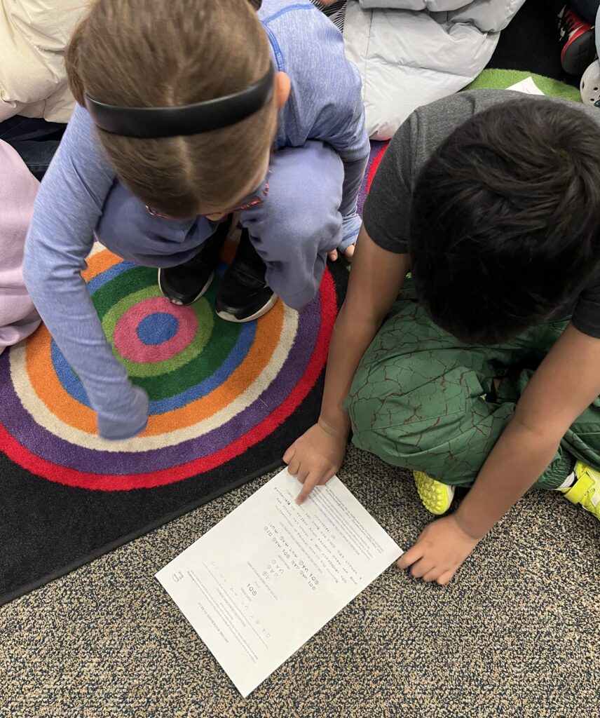 At the beginning of the session, students participated in a decoding exercise that simulated the experience of not being able to read. Using clues such as letter shapes and sounds, they worked step by step to decode unfamiliar text.